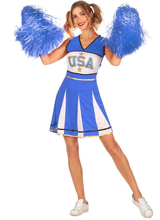 Déguisement pompom girl USA bleu femme