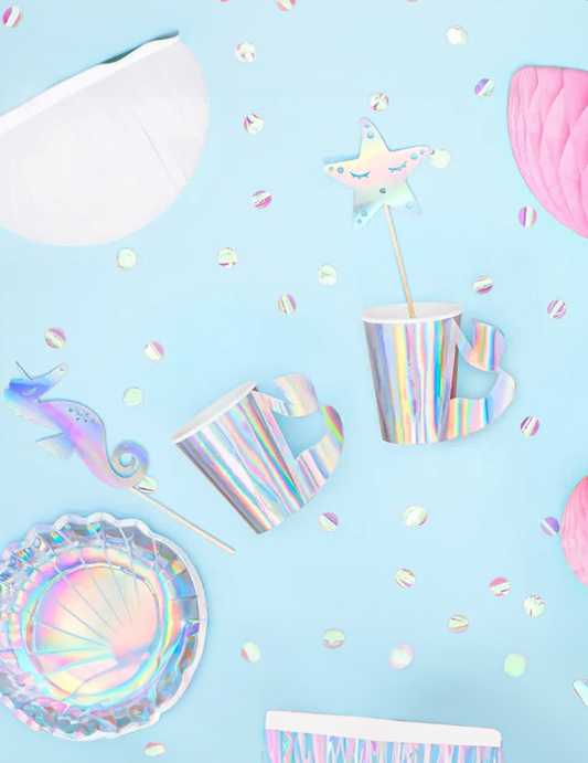 Assiettes en carton forme coquillage holographique 18,5 cm