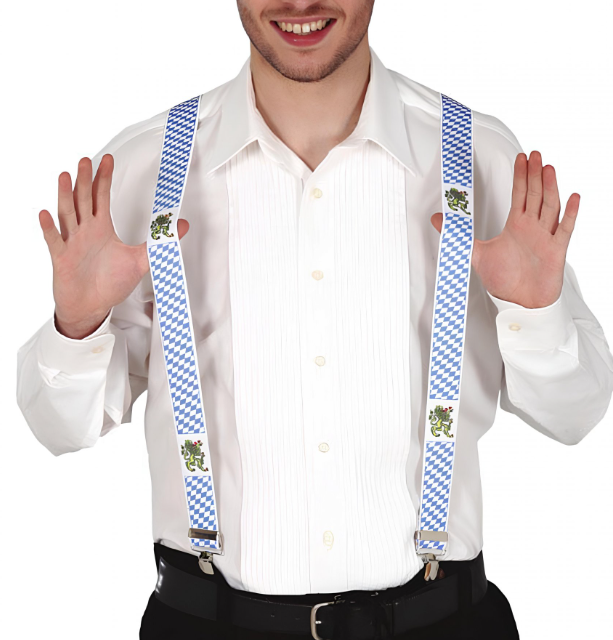Ces bretelles bavaroises à carreaux bleus et blancs sont l’élément parfait pour compléter une tenue pour la fête de la bière. Leur motif à carreaux évoque directement les couleurs emblématiques de la Bavière, pour une allure à la fois festive et typique.