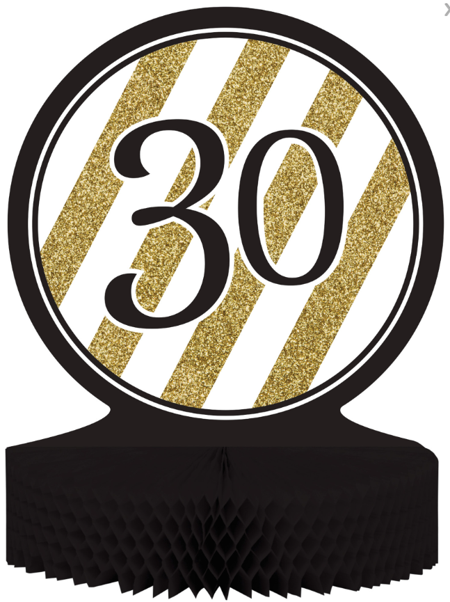Centre de table en papier alvéolé 30 ans noir et doré 23 x 30 cm
