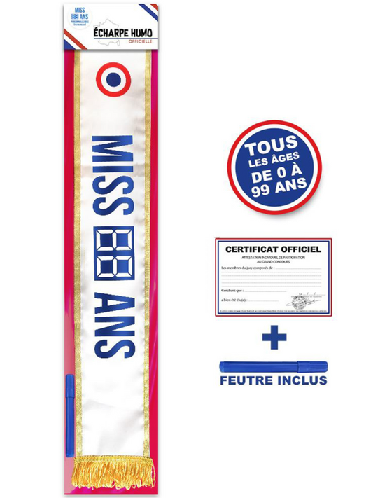 Echarpe de miss personnalisable anniversaire avec diplôme et feutre