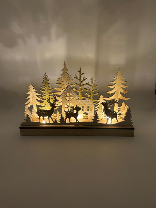 Scène d’hiver Forêt d’hiver avec éclairage en bois LED Beige (L/H/P) 30x18x8cm