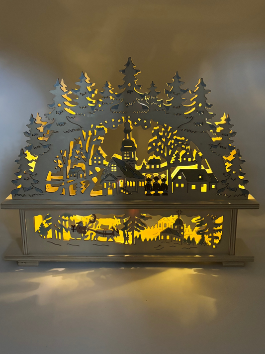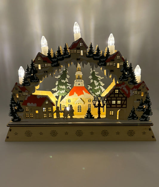 Arche à bougies Scène d’hiver Place du village en bois (L/H/P) 35x26x6 cm