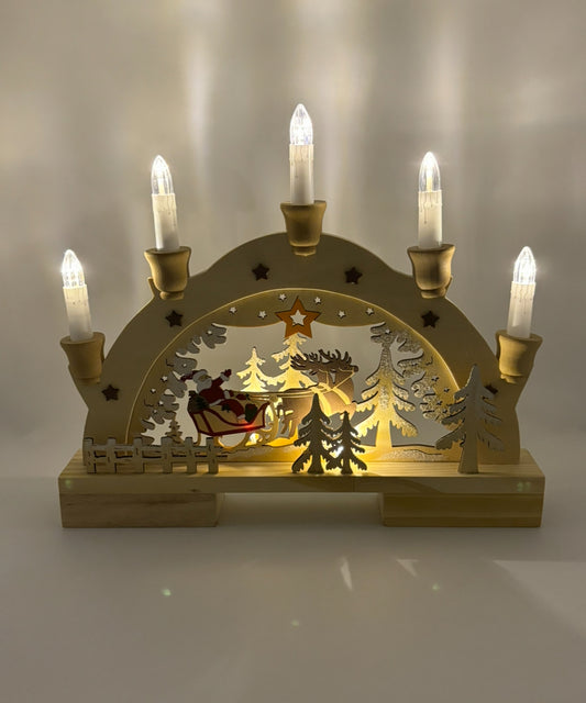 Arc lumineux Traîneau du Père Noël avec 5 LED en bois naturel (L/H/P) 32x27x5cm