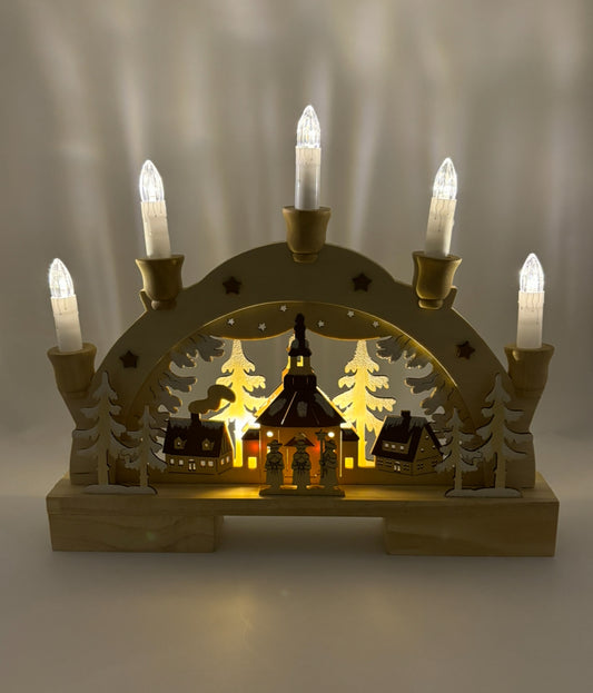Arc de lumière église avec 5 LED en bois naturel (L/H/P) 32x27x5cm