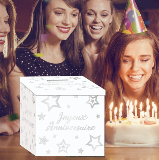 Chemin de table organza Joyeux Anniversaire argent 29 cm x 5 m