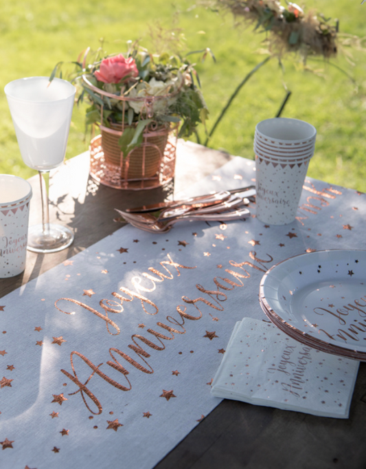 Chemin de table coton anniversaire rose gold 3m x 28 cm