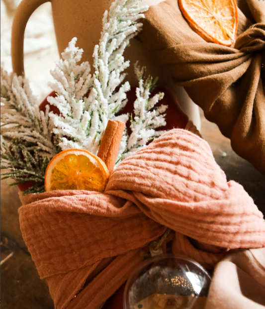 Chemin de table gaze de coton terracotta vieux rose 30 cm x 3 m