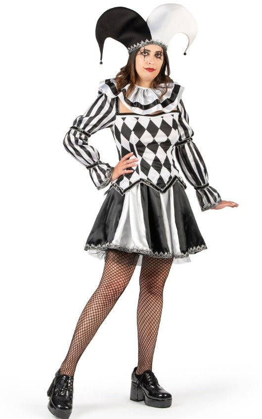Déguisement bouffon diabolique noir et blanc luxe femme