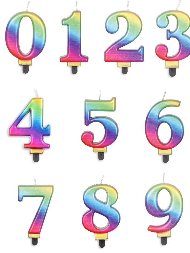 Cette bougie chiffre multicolore mesure environ 8 cm de hauteur.