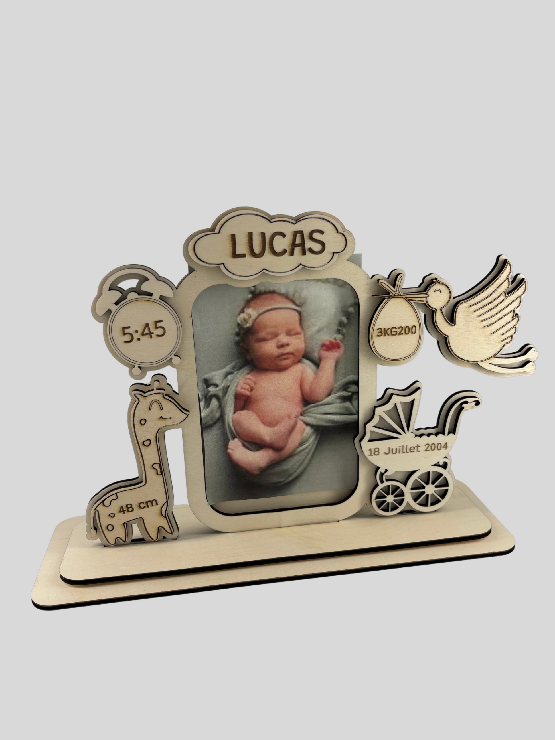Offrez un souvenir unique avec ce cadre de naissance personnalisable en bois. Élégant et chaleureux, il met en valeur les détails précieux de la naissance de votre enfant, créant un souvenir durable à chérir. Facile à personnaliser, ce cadre s’adapte parfaitement à votre décoration tout en célébrant ce moment spécial avec douceur et authenticité.
