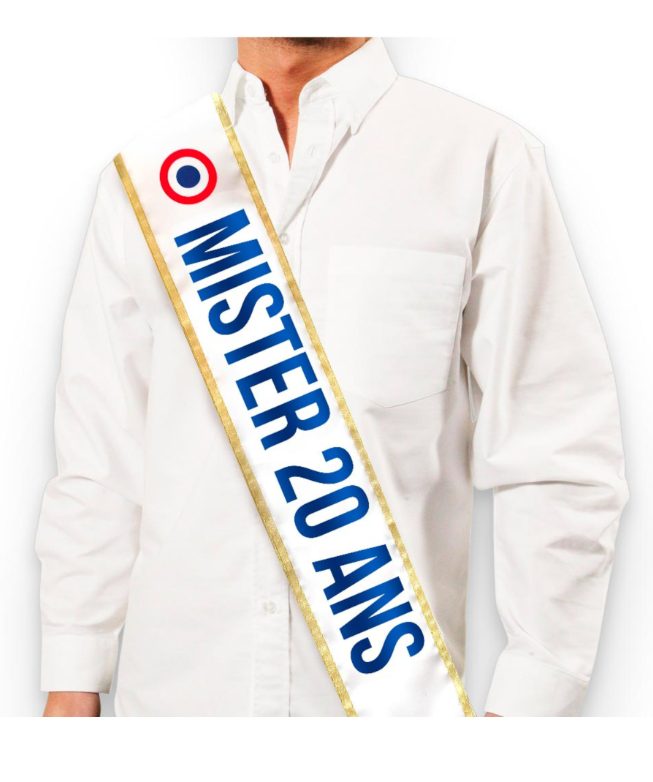 Elle possède l'inscription "Mister 20aine" et deux liserés dorés sur les côtés.