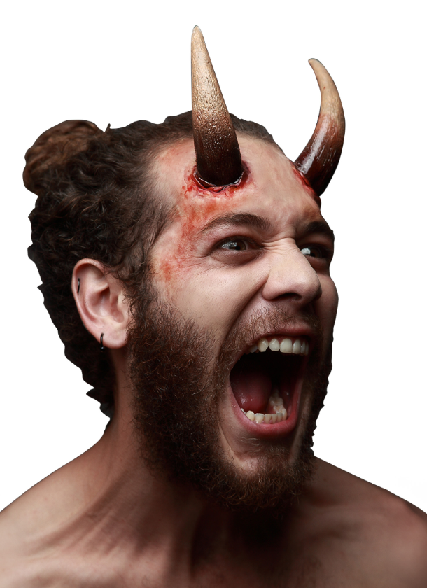 Parfaitement exécutées, les cornes sont en latex souple. Leurs détails impressionnants soulignent le réalisme notamment grâce aux bases imprégnées de faux sang et imitant la peau !