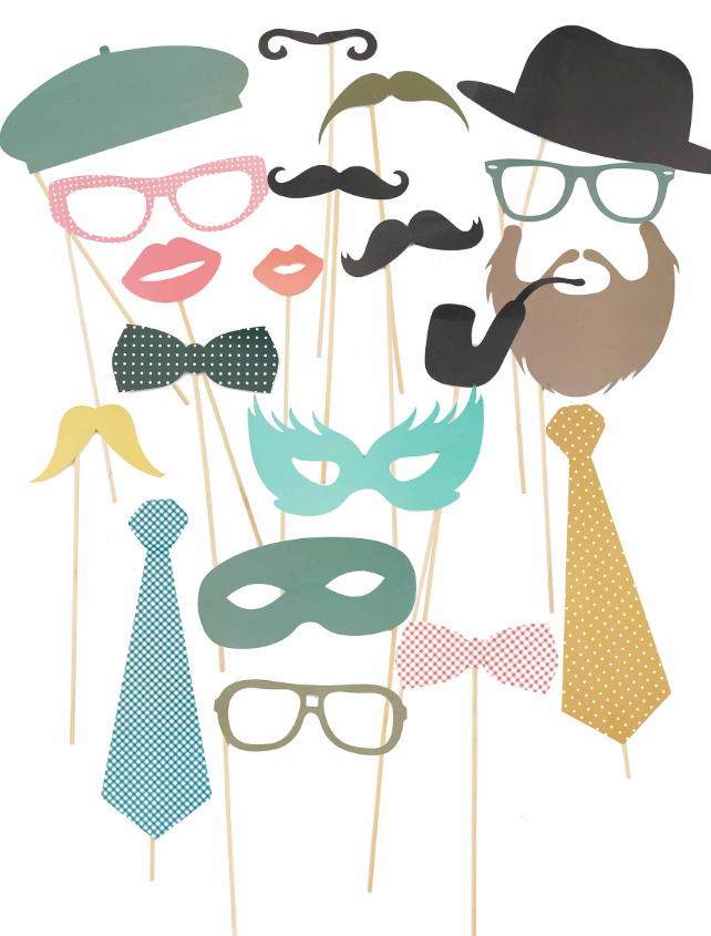 Ce superbe kit photobooth de 20 pièces est composé de :