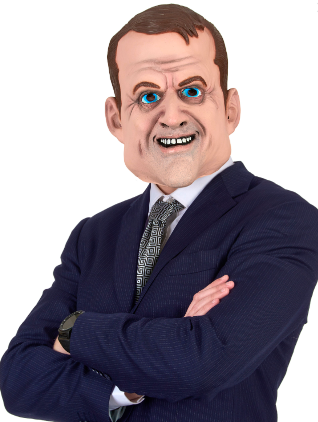 Ce masque humoristique en latex représente le visage de Emmanuel Macron. Il recouvrira entièrement votre visage.