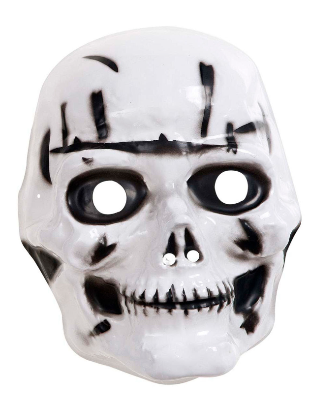 Ce masque est blanc et noir. Il représente un squette-tête de mort, il possède 2 trous au niveau du nez et des ouvertures sur les yeux afin d'assurer une bonne visibilté. Ce demi-masque tiendra sur la tête de votre enfant grâce à une corde élastique au dos du masque.