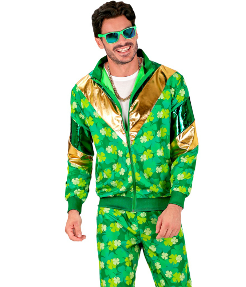 Ce survêtement à trèfles Saint Patrick est pour adulte de grande taille. Il est composé d'une veste ainsi que d'un pantalon.
